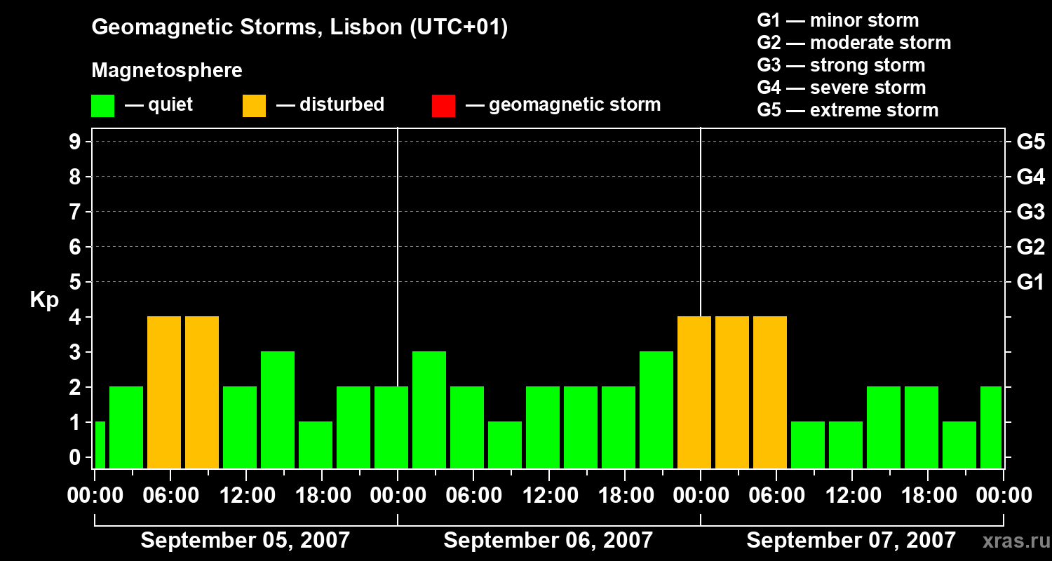 Geomagnetic storms in Lisbon on Sep 07, 2007