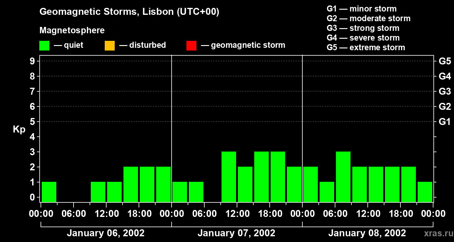 Geomagnetic storms in Lisbon on Jan 08, 2002