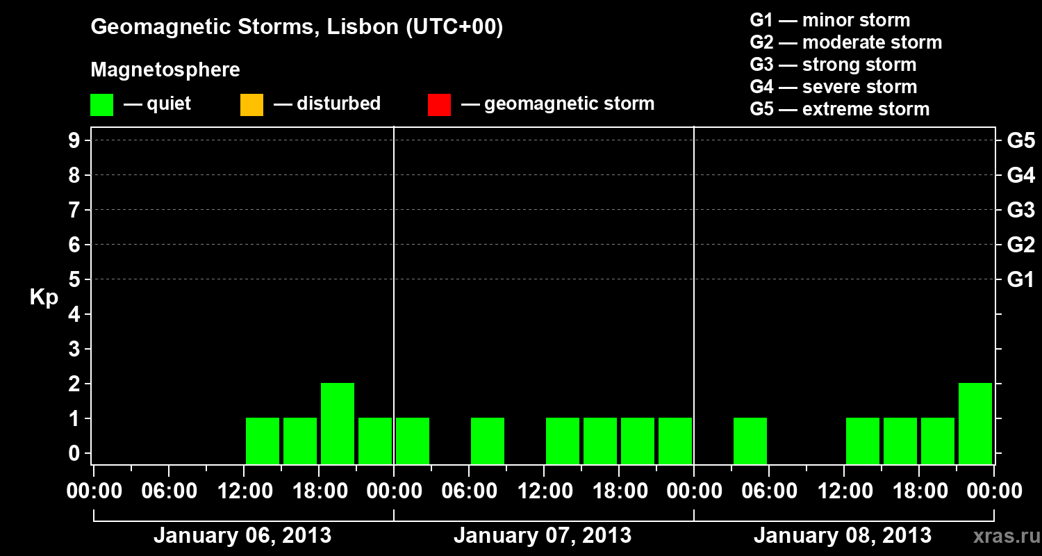 Geomagnetic storms in Lisbon on Jan 08, 2013