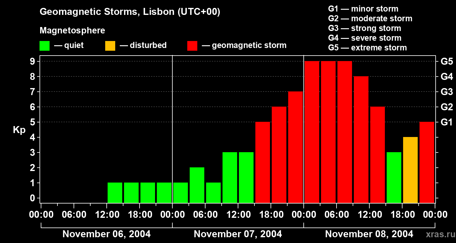 Geomagnetic storms in Lisbon — Nov 08, 2004