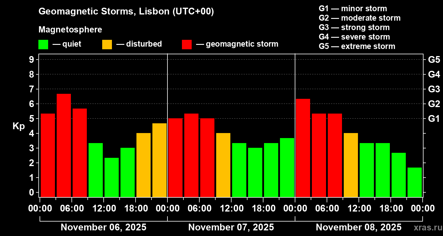 Geomagnetic storms in Lisbon in November 2025