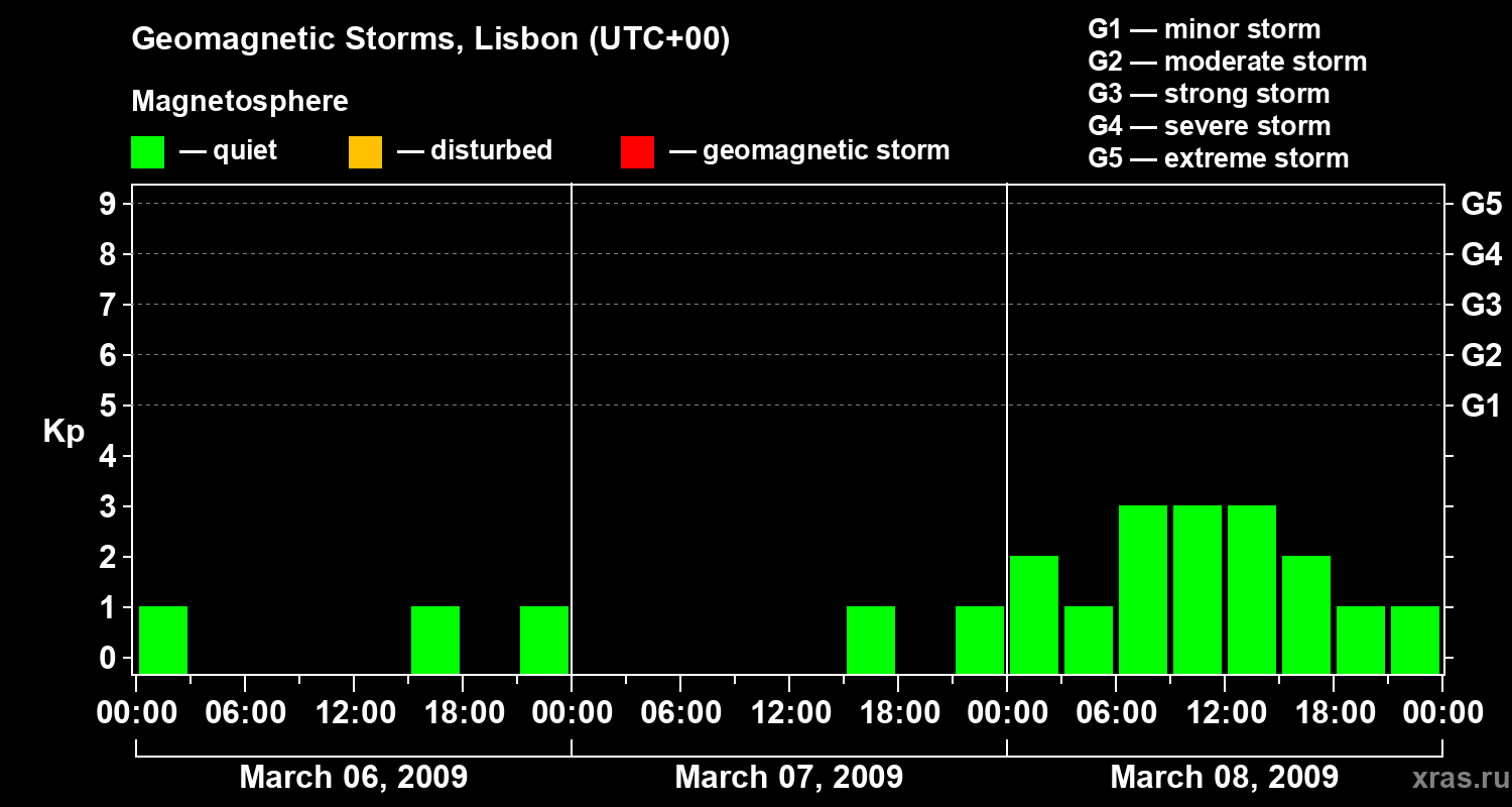 Geomagnetic storms in Lisbon — Mar 08, 2009