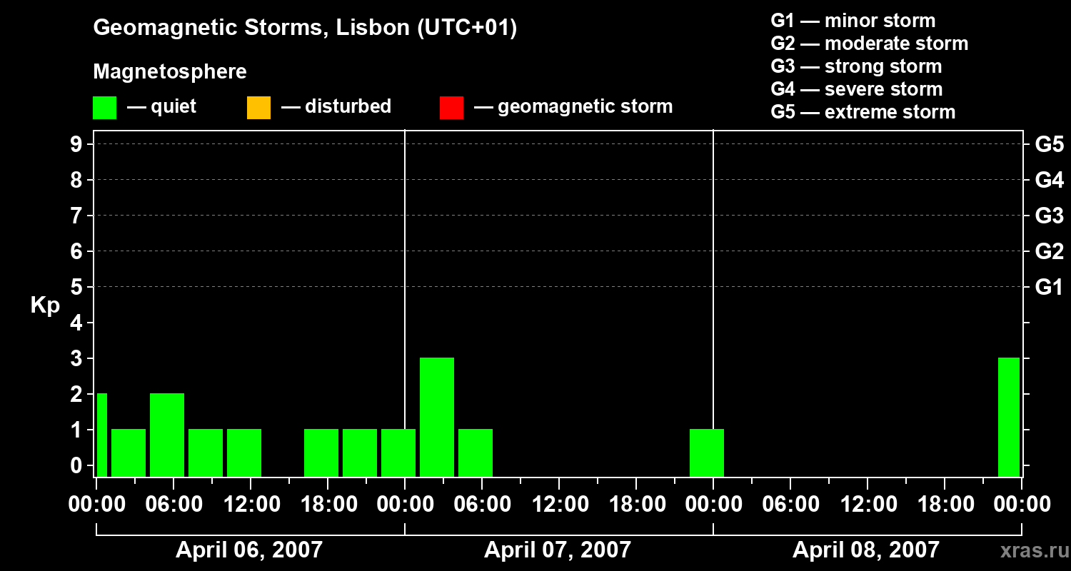 Geomagnetic storms in Lisbon on Apr 08, 2007