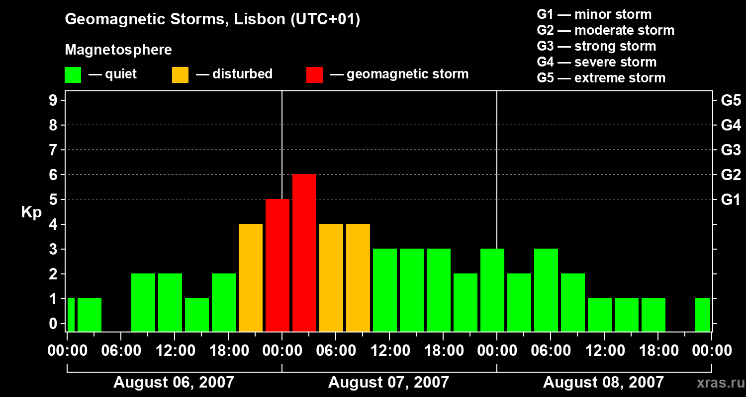 Geomagnetic storms in Lisbon — Aug 08, 2007