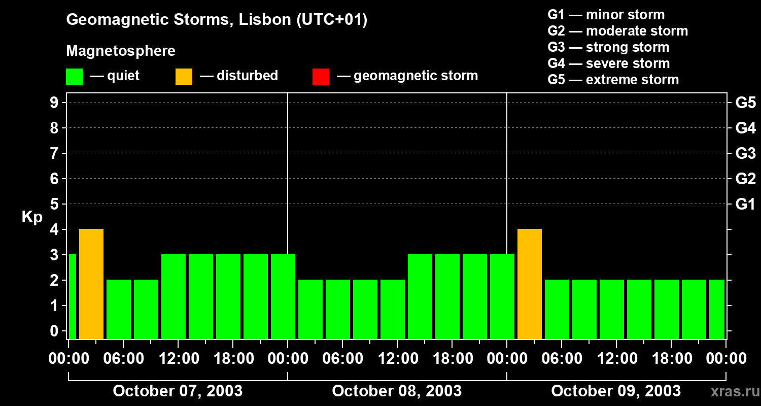 Geomagnetic storms in Lisbon on Oct 09, 2003