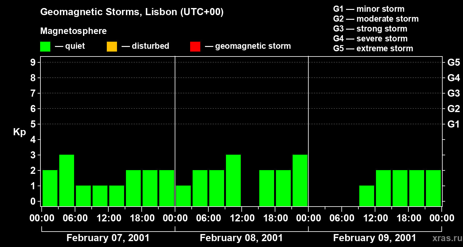 Geomagnetic storms in Lisbon on Feb 09, 2001