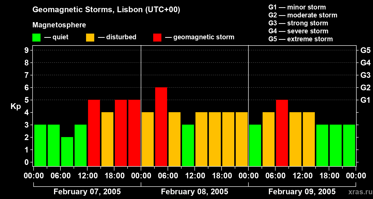Geomagnetic storms in Lisbon on Feb 09, 2005