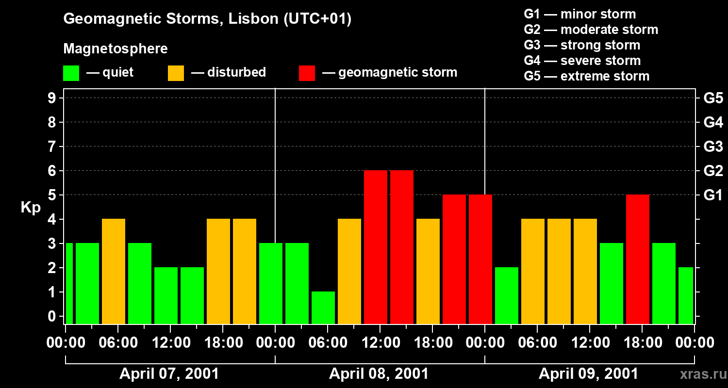 Geomagnetic storms in Lisbon on Apr 09, 2001