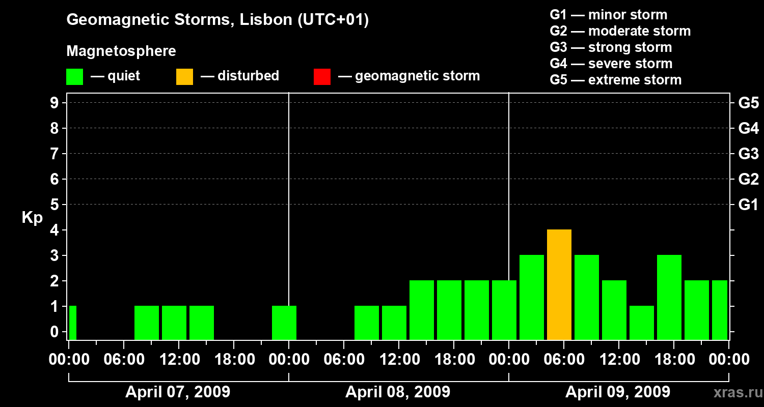 Geomagnetic storms in Lisbon on Apr 09, 2009
