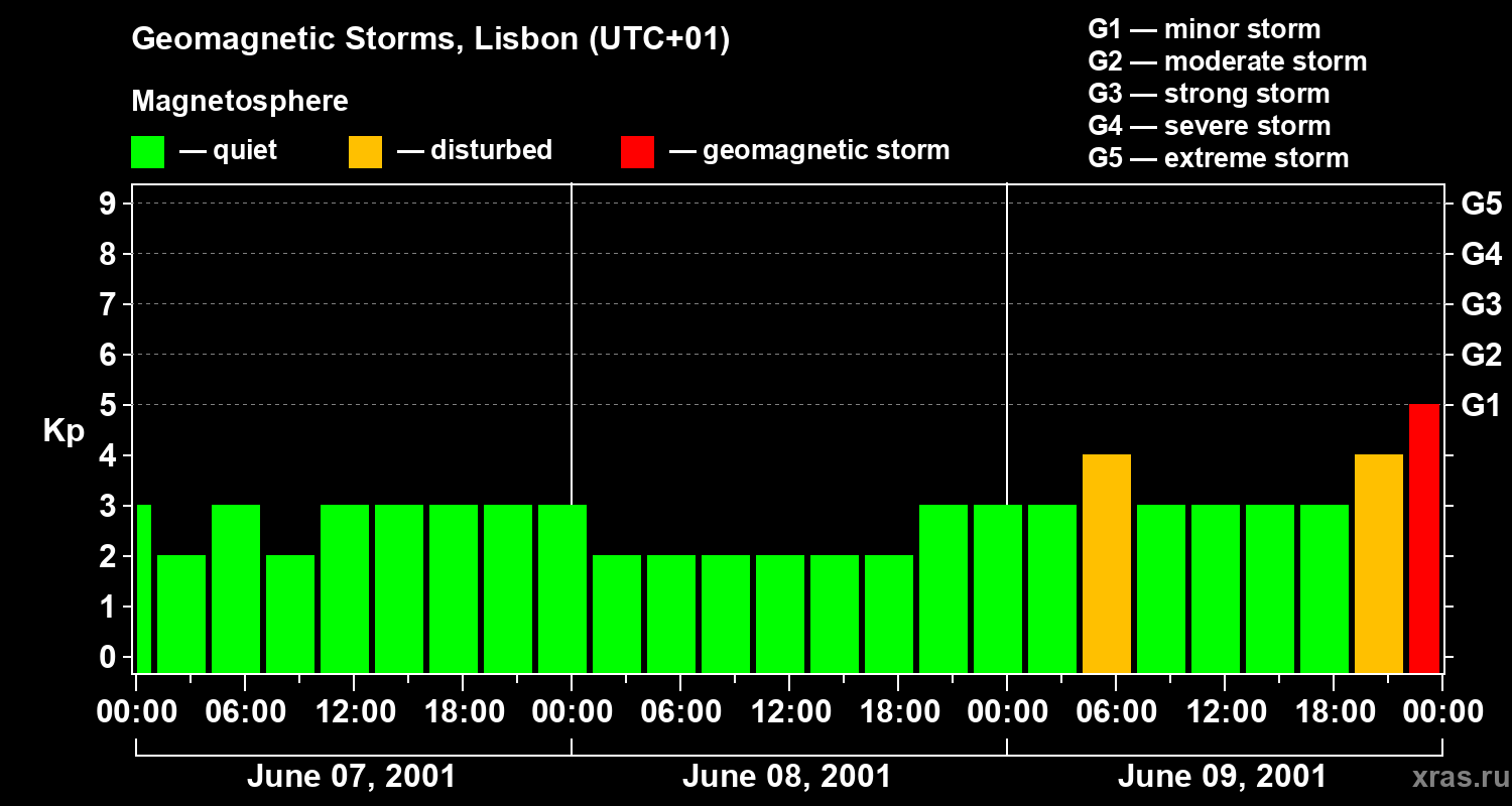 Geomagnetic storms in Lisbon on Jun 09, 2001