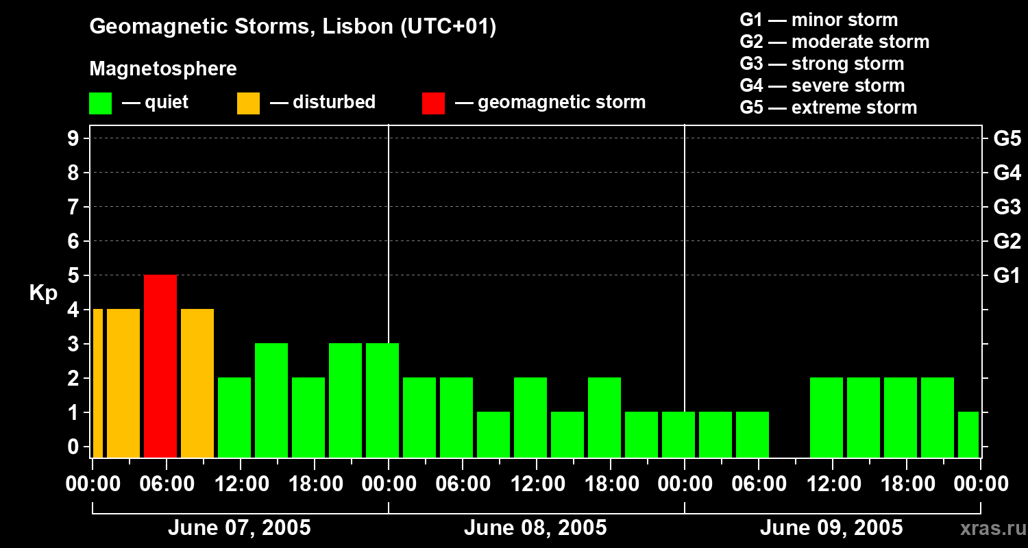 Geomagnetic storms in Lisbon on Jun 09, 2005