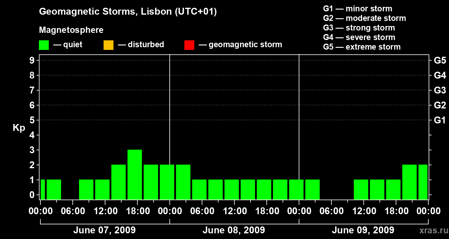 Geomagnetic storms in Lisbon on Jun 09, 2009