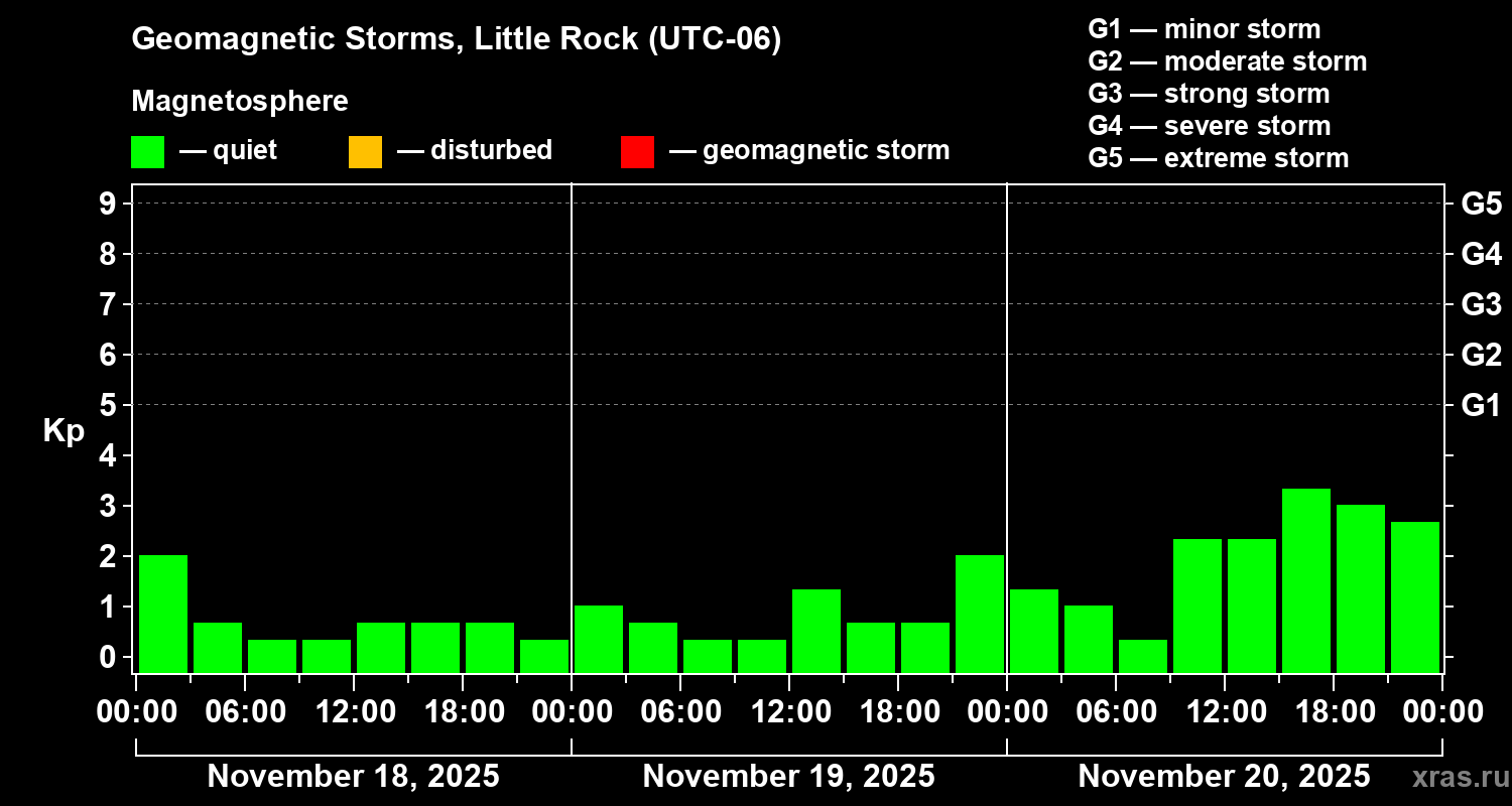 Geomagnetic storms in Little Rock on Nov 20, 2025
