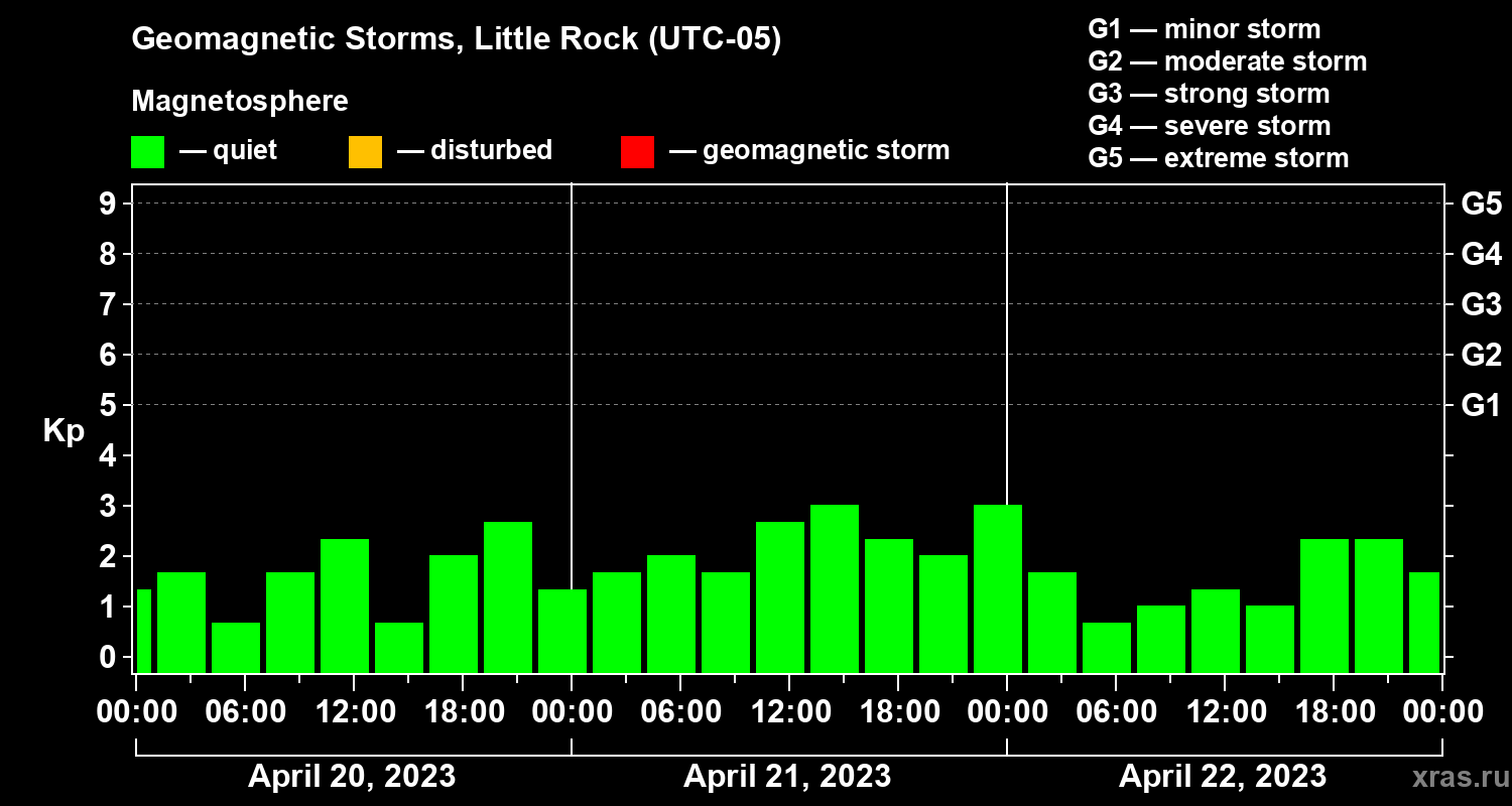 Geomagnetic storms in Little Rock — Apr 22, 2023