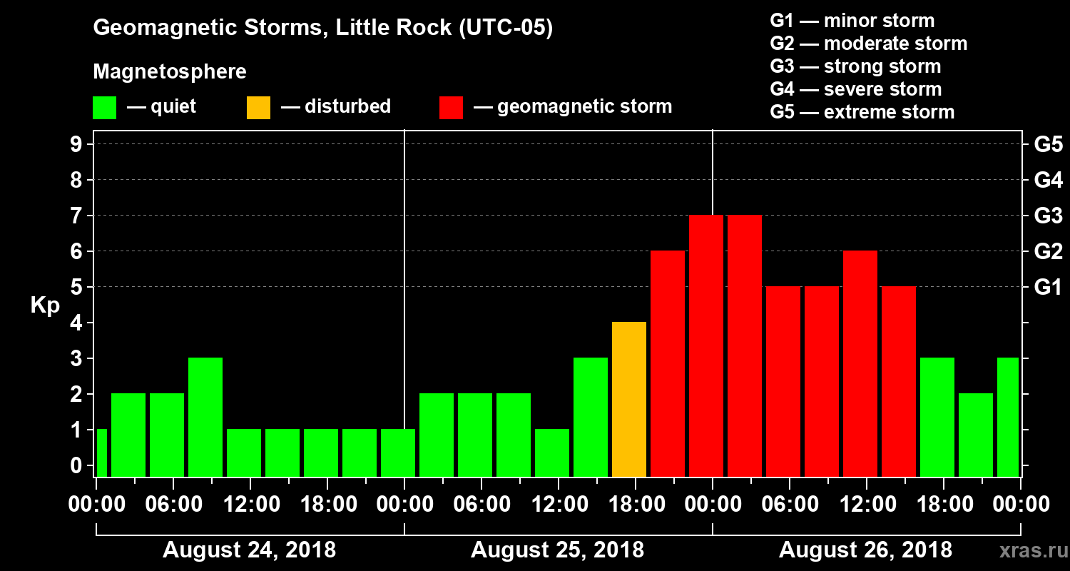 Geomagnetic storms in Little Rock — Aug 26, 2018