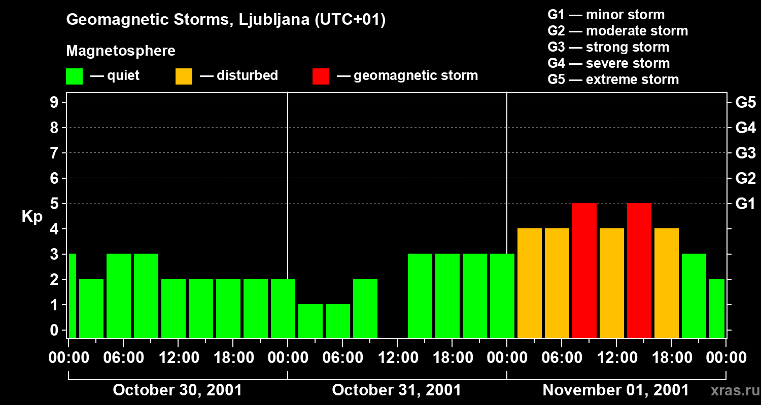 Geomagnetic storms in Ljubljana — Nov 01, 2001