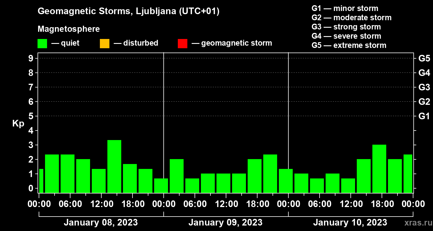 Geomagnetic storms in Ljubljana — Jan 10, 2023
