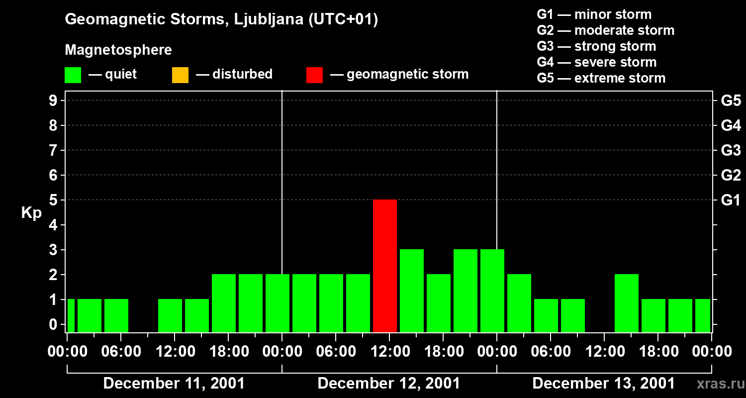 Geomagnetic storms in Ljubljana — Dec 13, 2001