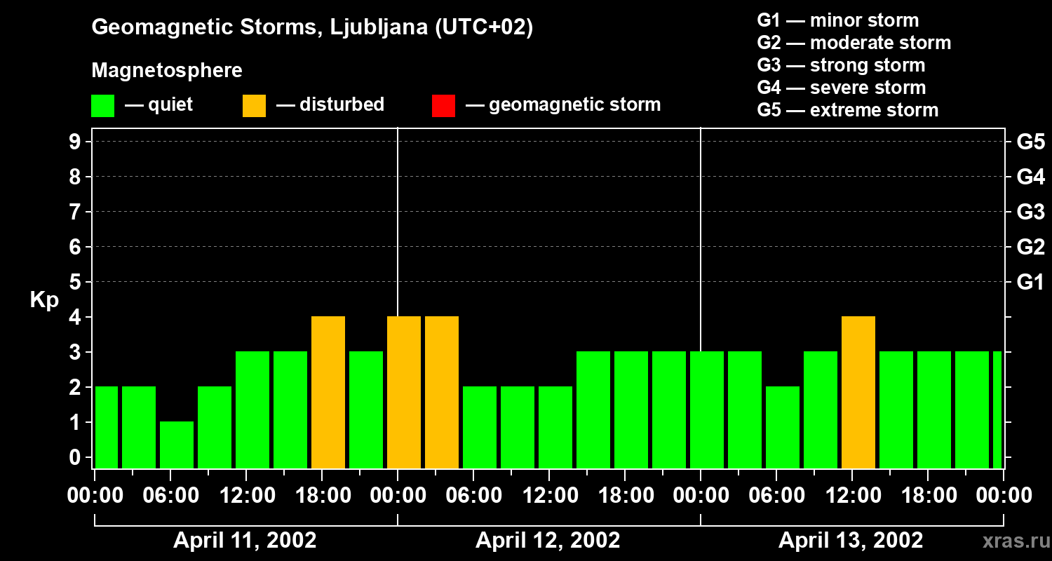 Geomagnetic storms in Ljubljana — Apr 13, 2002