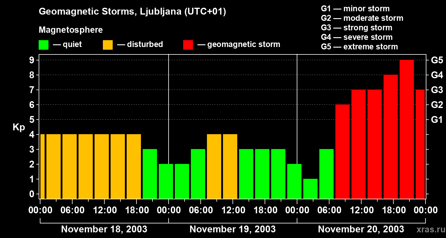 Geomagnetic storms in Ljubljana — Nov 20, 2003