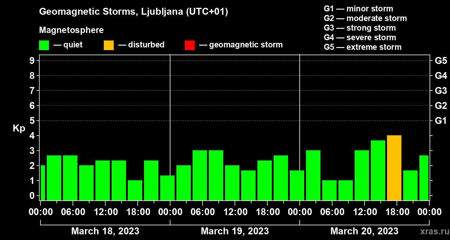 Geomagnetic storms in Ljubljana on Mar 20, 2023