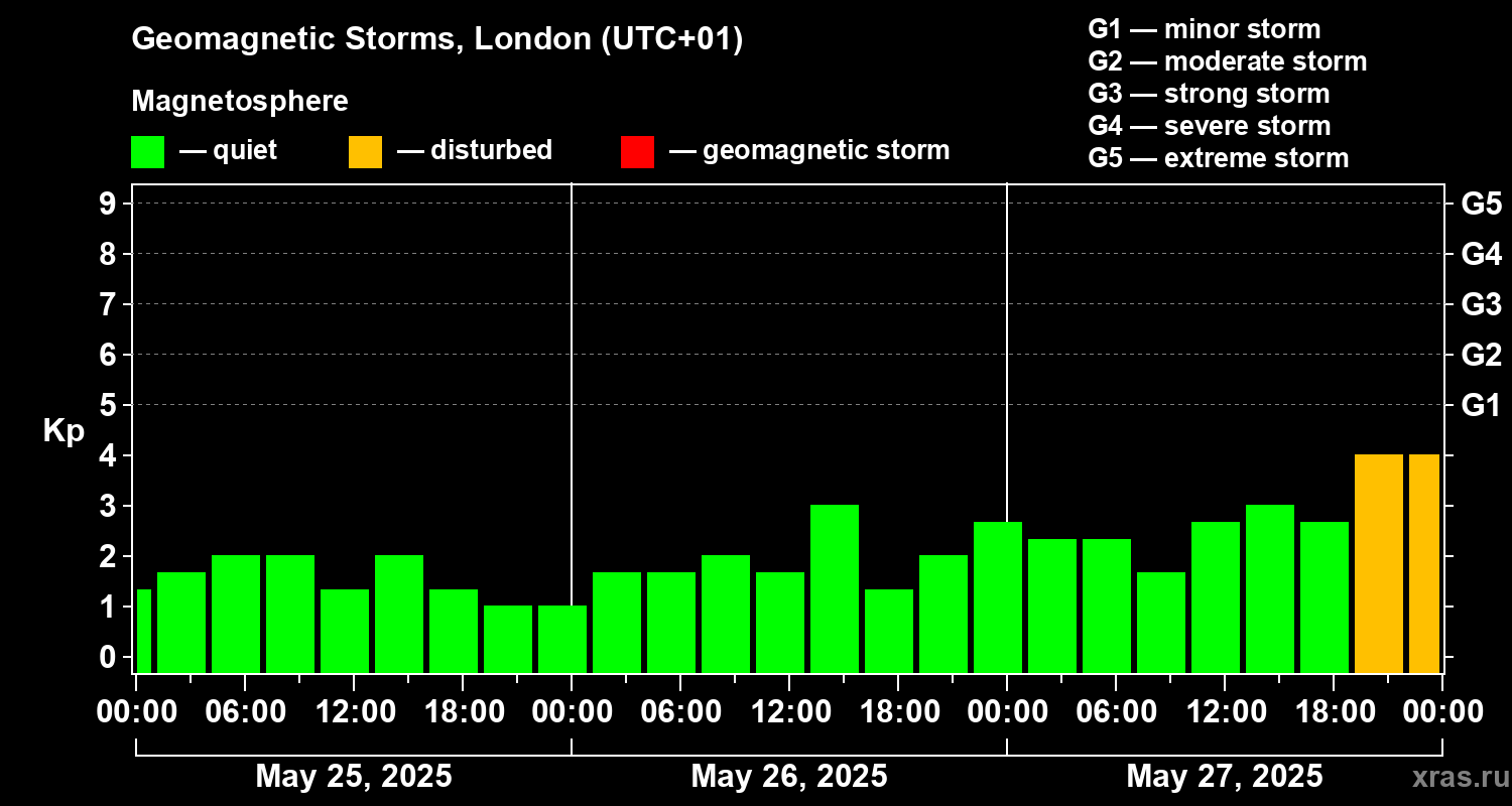 Geomagnetic storms in London on May 27, 2025