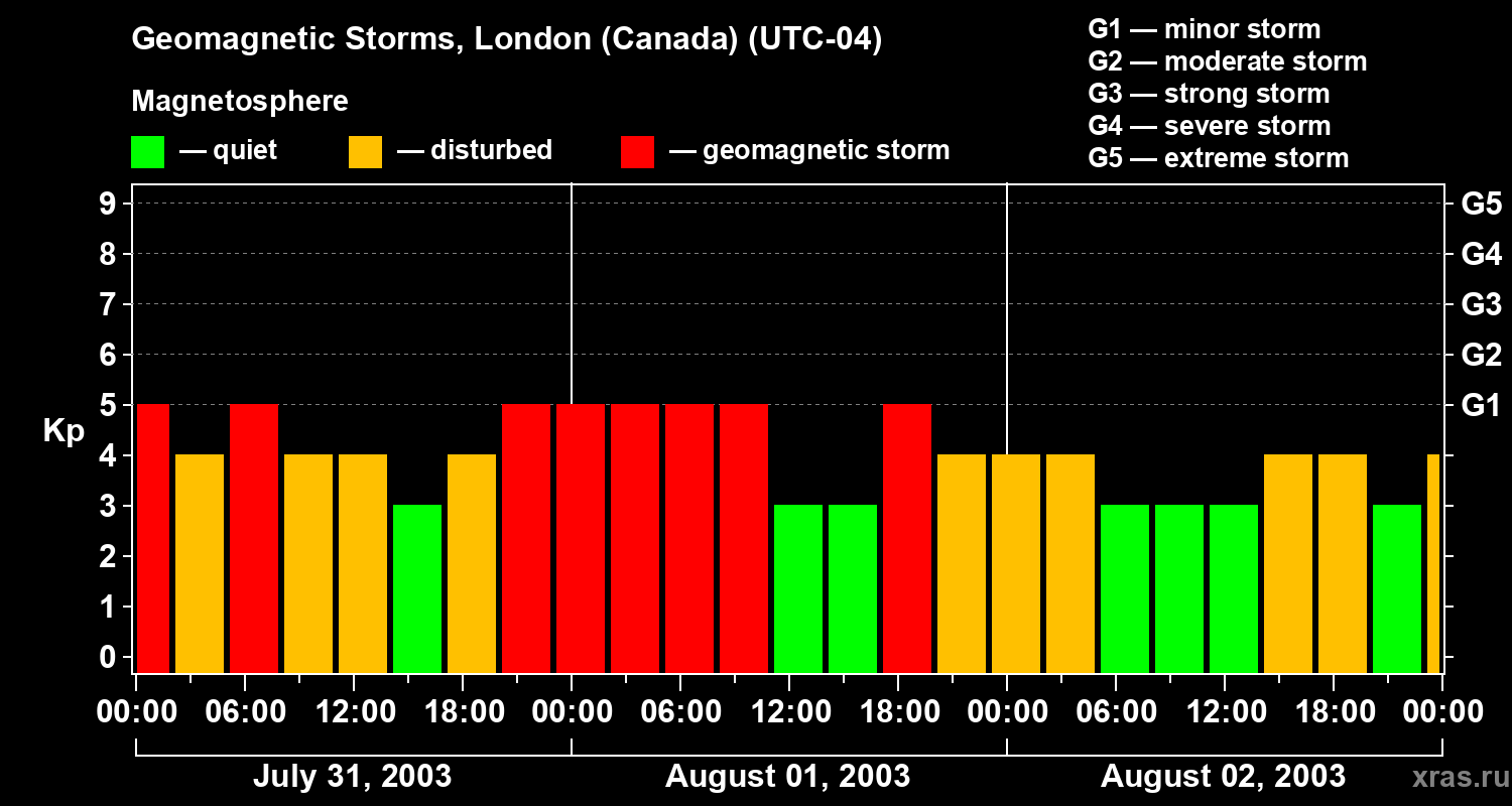 Geomagnetic storms in London (Canada) on Aug 02, 2003