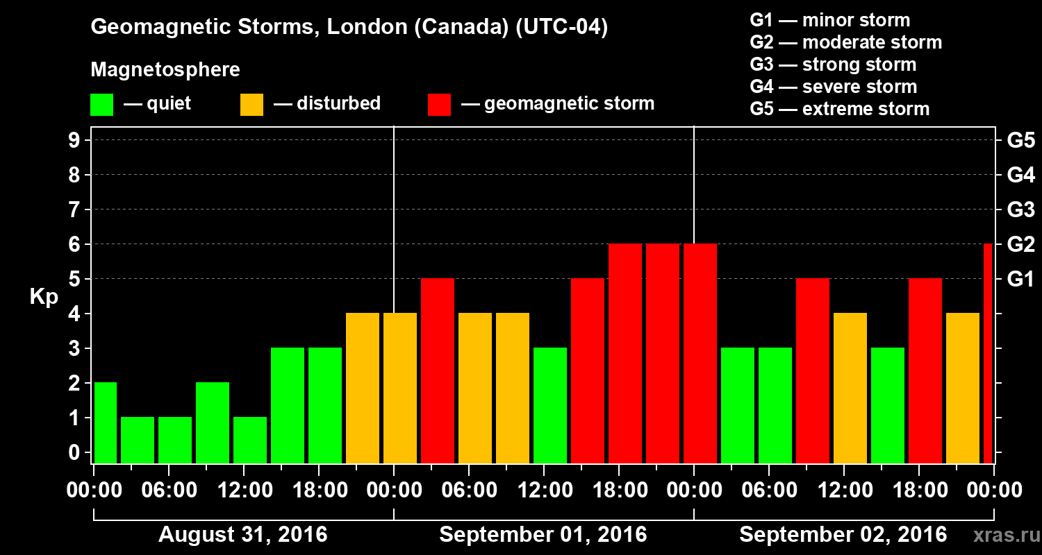 Geomagnetic storms in London (Canada) — Sep 02, 2016