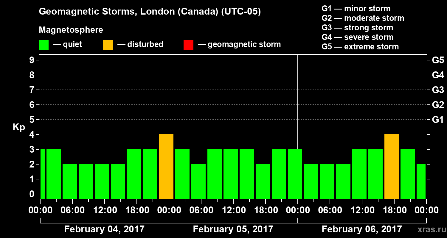 Geomagnetic storms in London (Canada) — Feb 06, 2017
