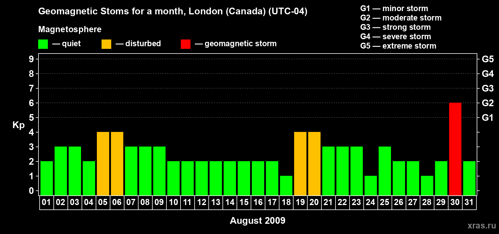 Geomagnetic storms in London (Canada) — Aug 06, 2009