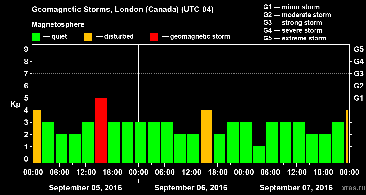 Geomagnetic storms in London (Canada) — Sep 07, 2016