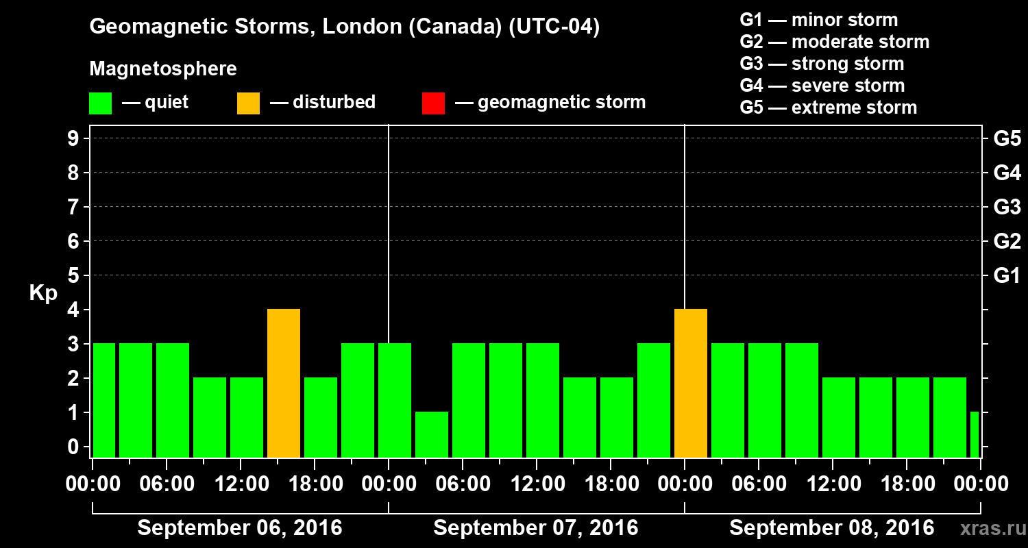 Geomagnetic storms in London (Canada) — Sep 08, 2016