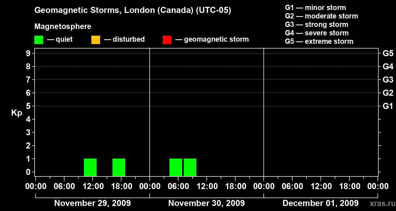 Geomagnetic storms in London (Canada) on Dec 01, 2009