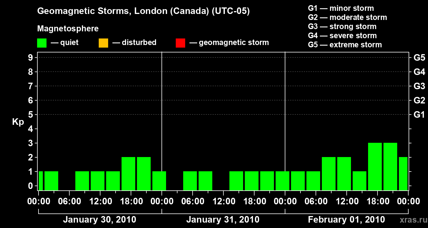 Geomagnetic storms in London (Canada) — Feb 01, 2010
