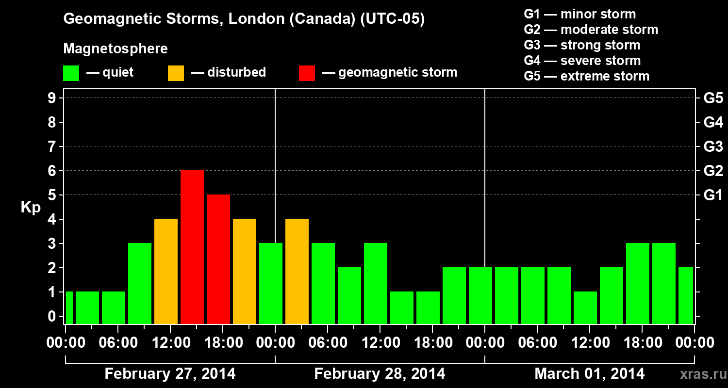 Geomagnetic storms in London (Canada) — Mar 01, 2014