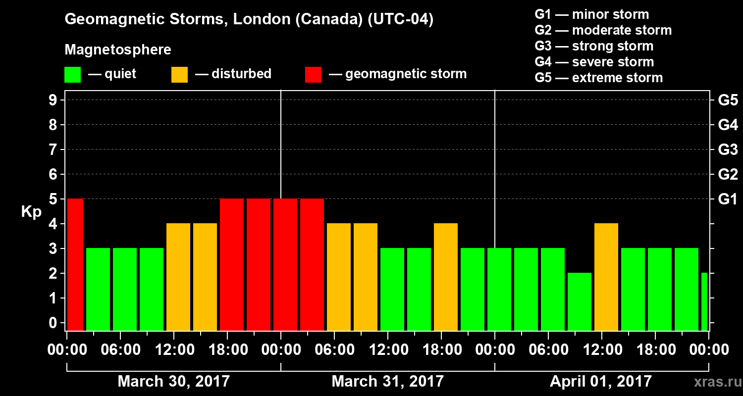 Geomagnetic storms in London (Canada) — Apr 01, 2017