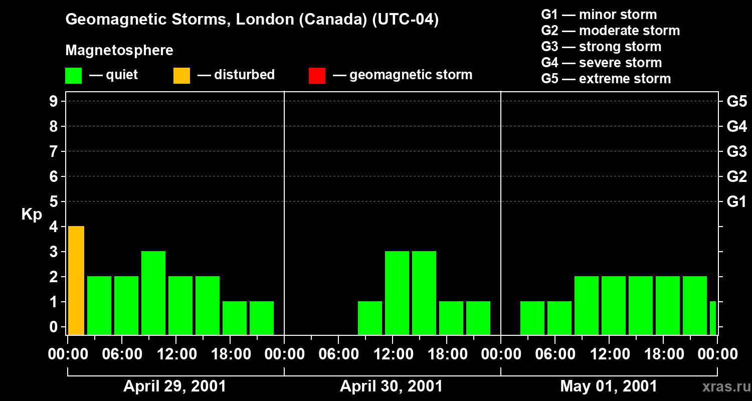 Geomagnetic storms in London (Canada) on May 01, 2001
