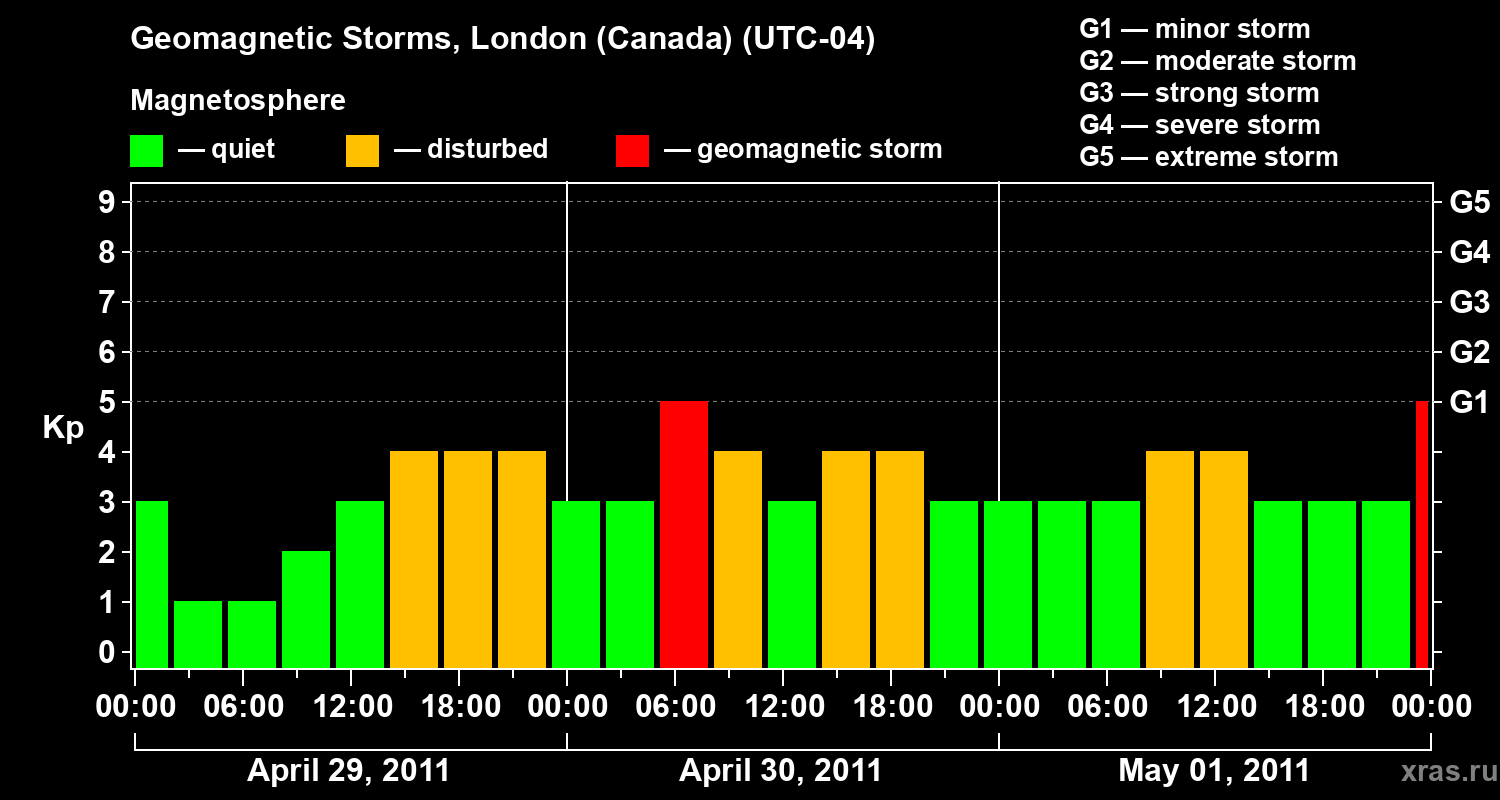 Geomagnetic storms in London (Canada) — May 01, 2011