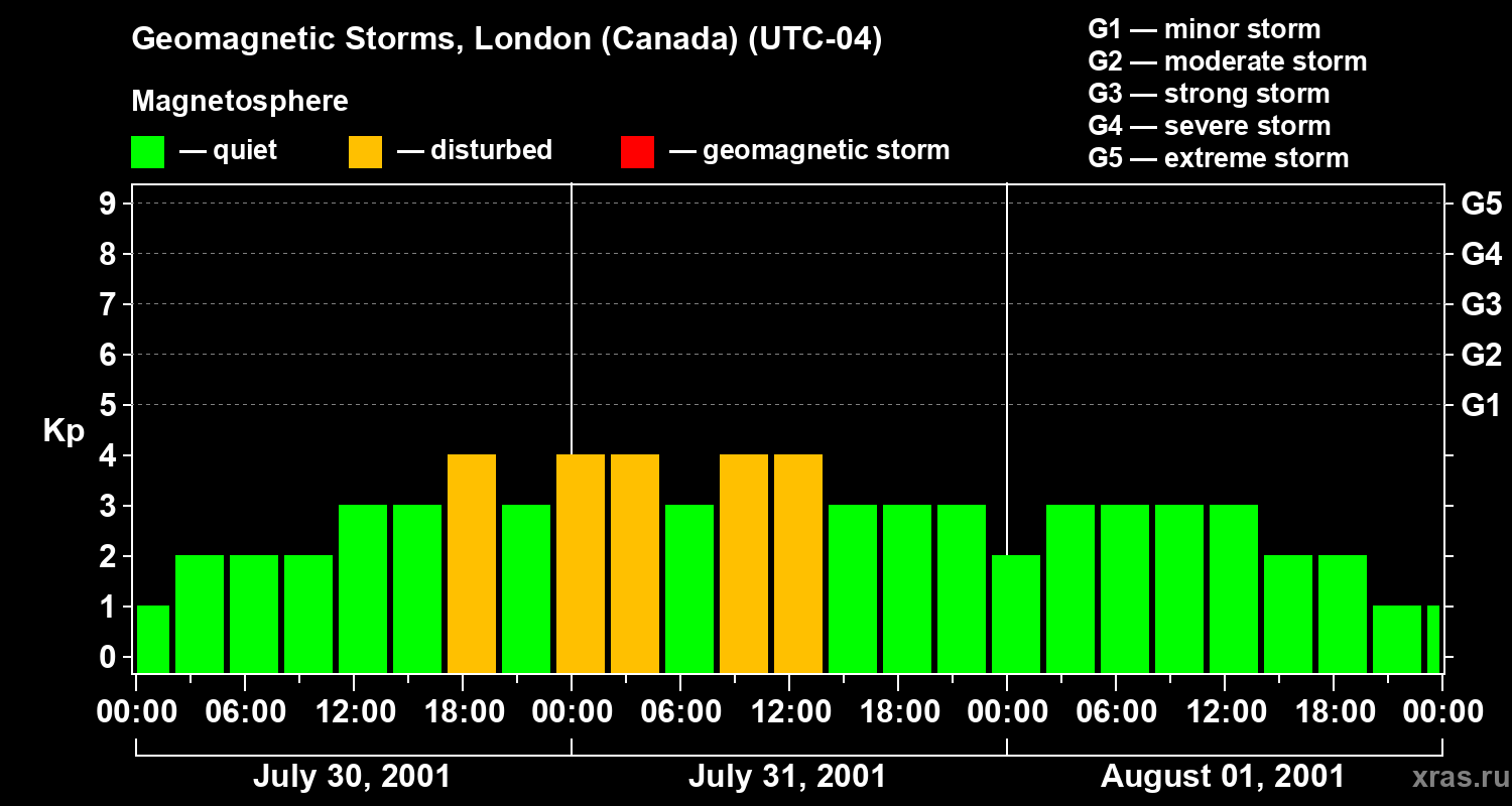 Geomagnetic storms in London (Canada) on Aug 01, 2001