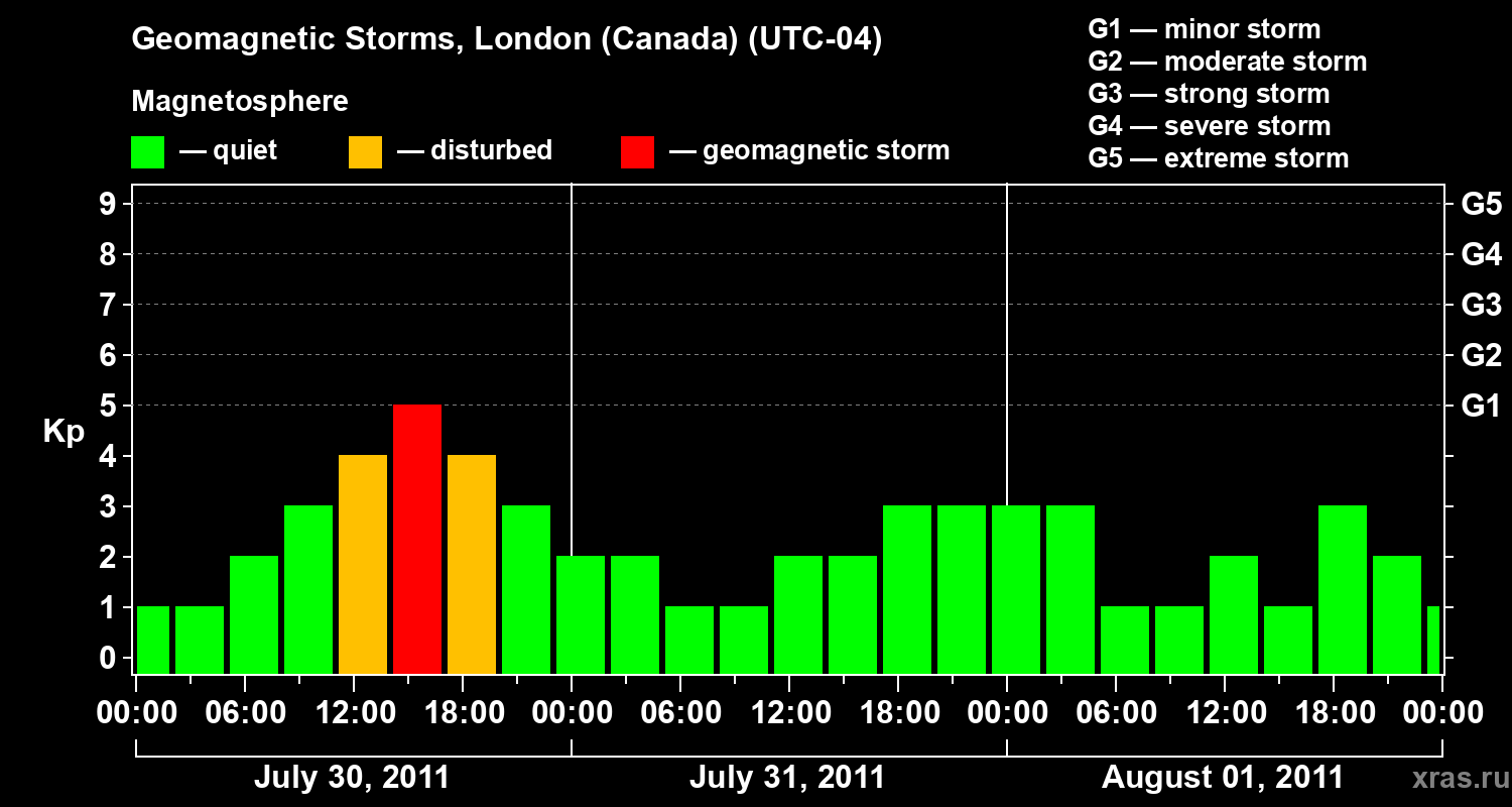 Geomagnetic storms in London (Canada) — Aug 01, 2011