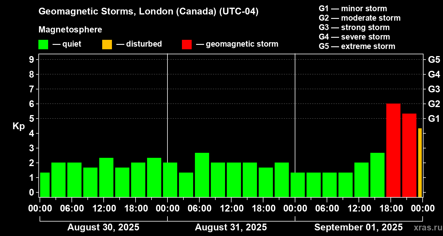 Geomagnetic storms in London (Canada) — Sep 01, 2025
