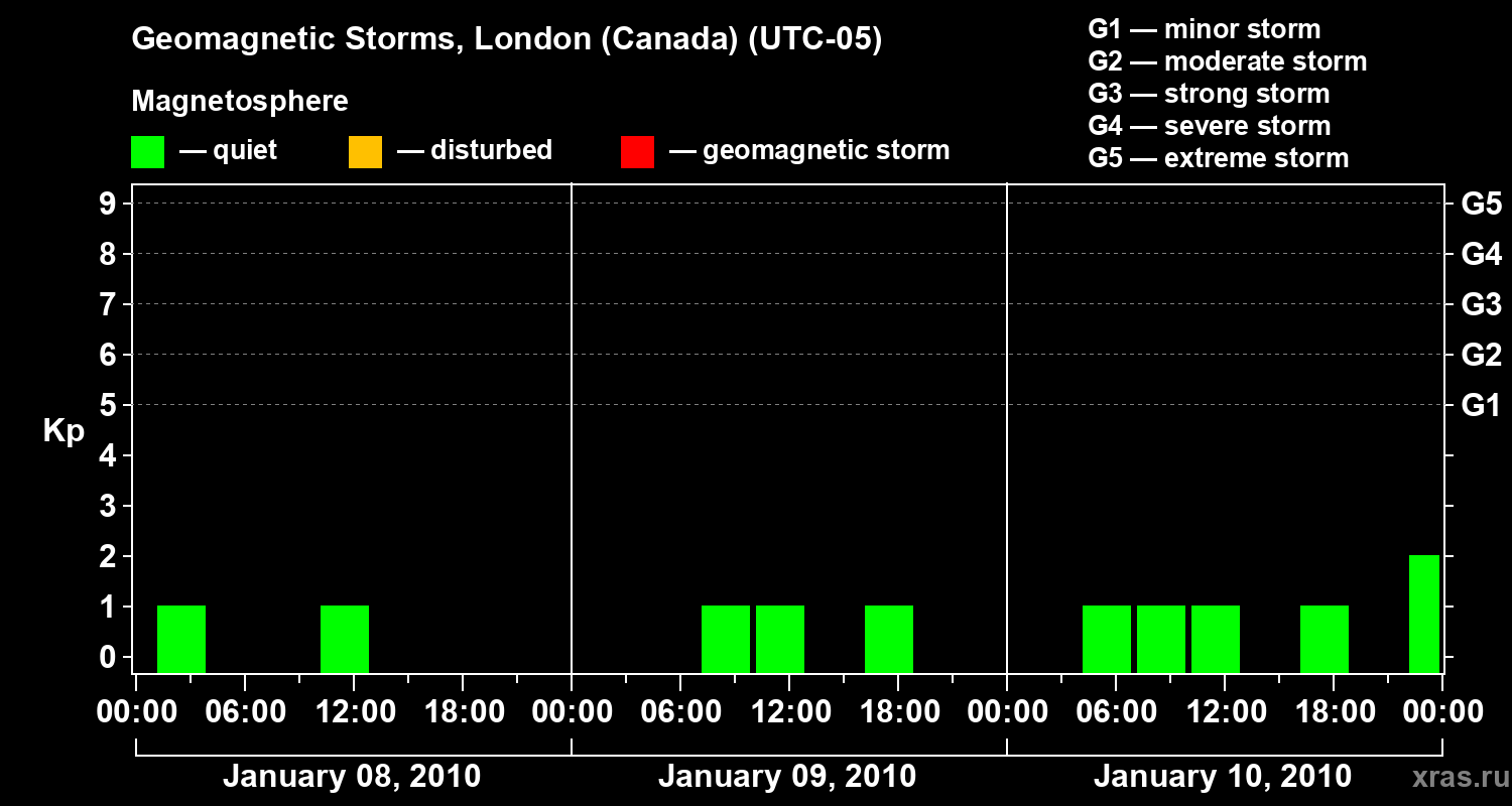 Geomagnetic storms in London (Canada) on Jan 10, 2010