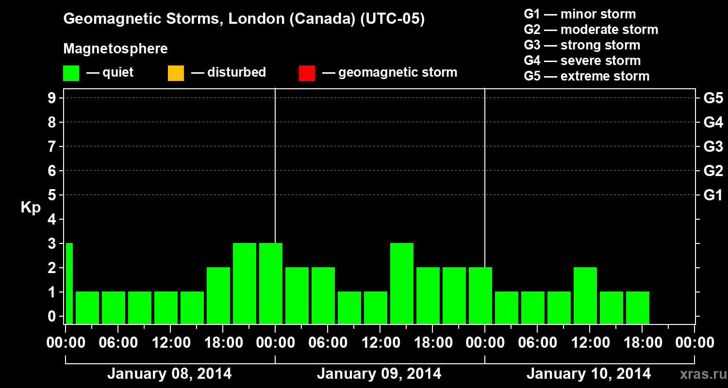 Geomagnetic storms in London (Canada) — Jan 10, 2014