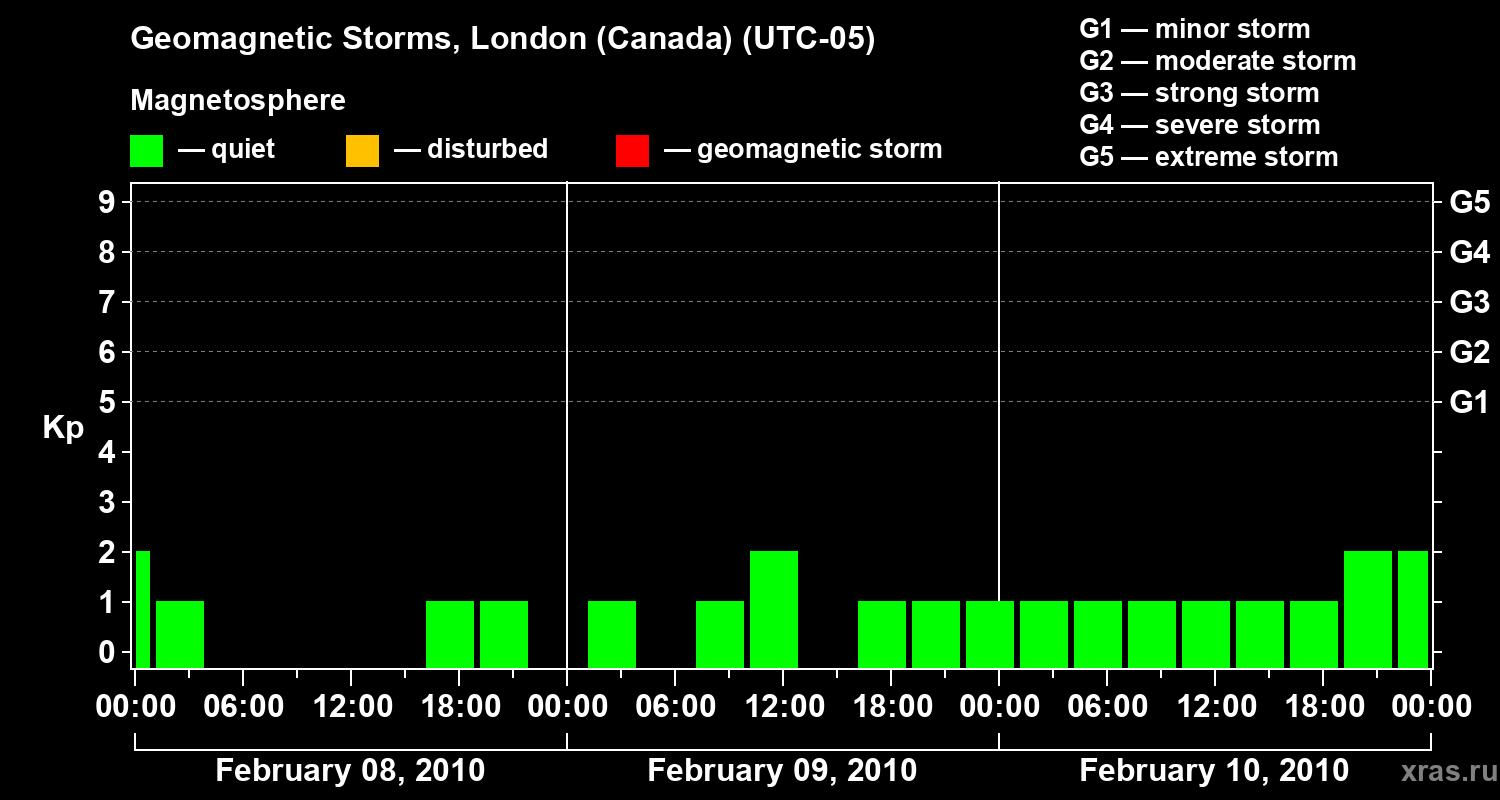 Geomagnetic storms in London (Canada) — Feb 10, 2010