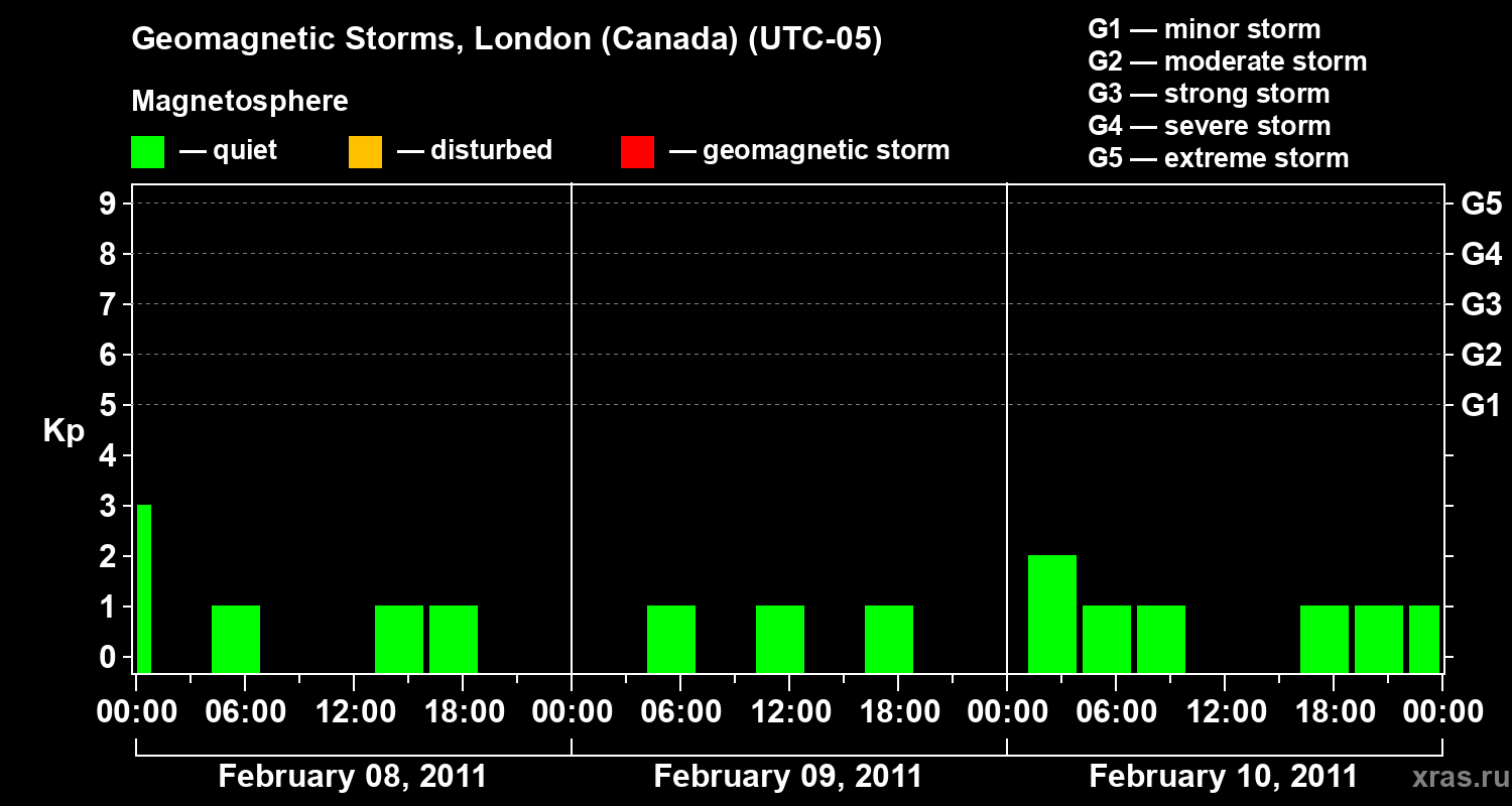 Geomagnetic storms in London (Canada) — Feb 10, 2011