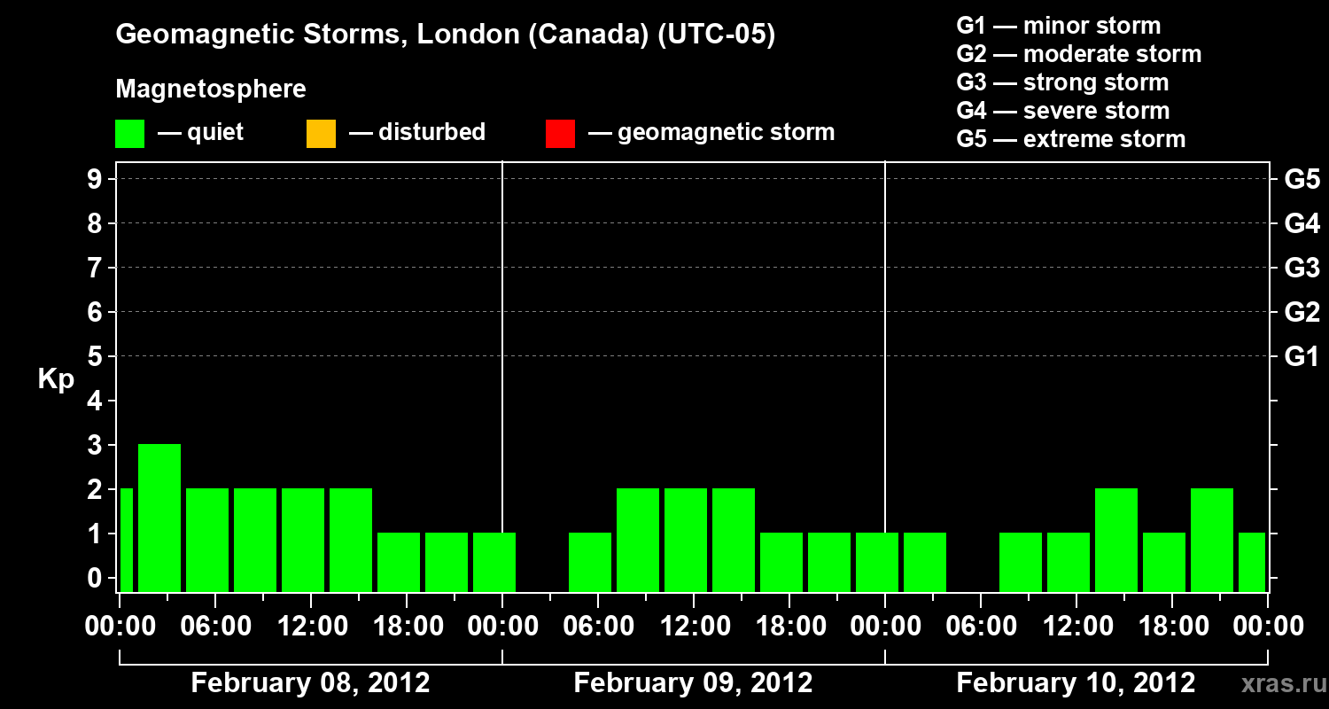 Geomagnetic storms in London (Canada) — Feb 10, 2012