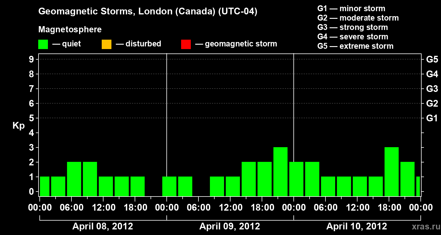 Geomagnetic storms in London (Canada) — Apr 10, 2012