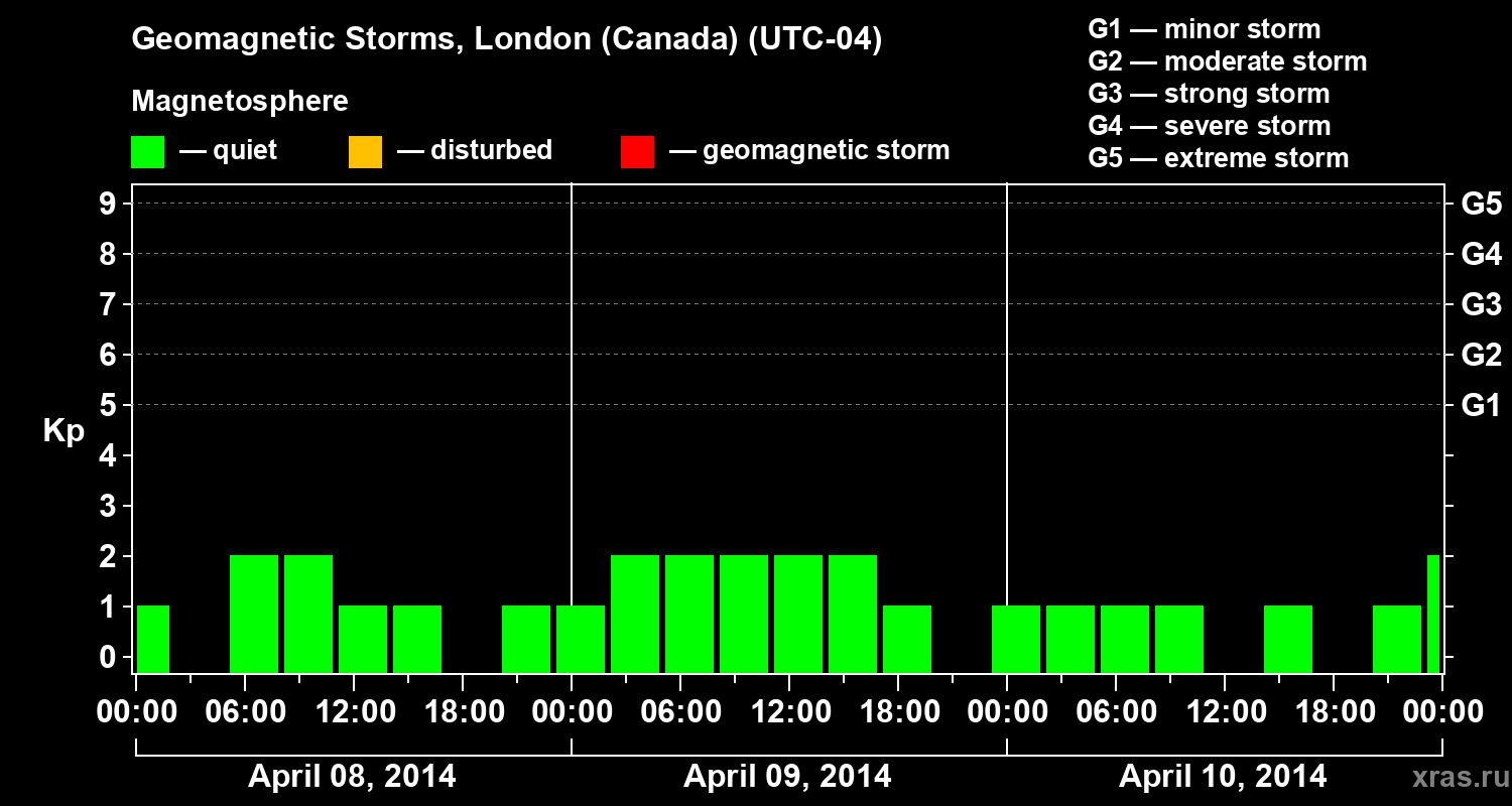 Geomagnetic storms in London (Canada) — Apr 10, 2014
