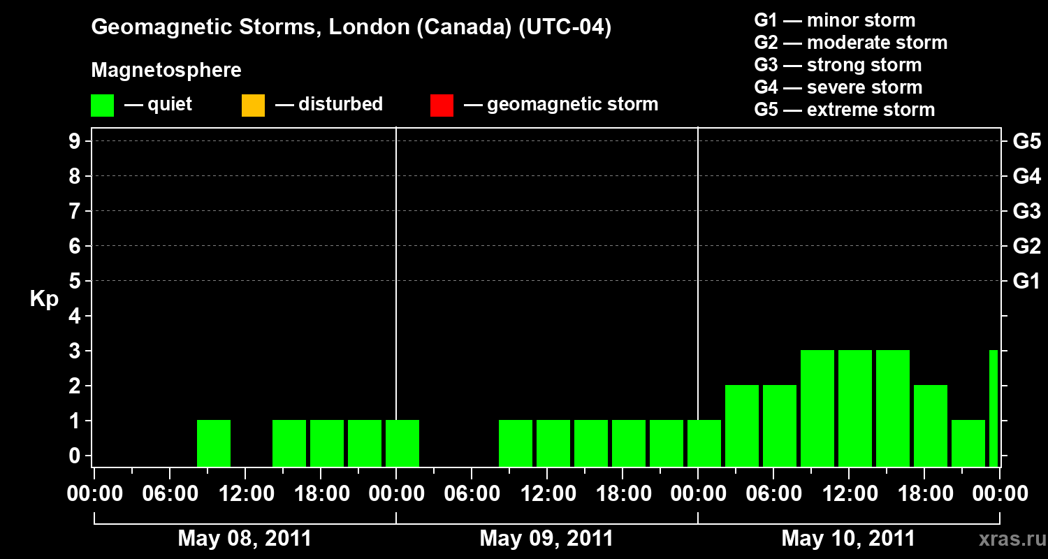 Geomagnetic storms in London (Canada) — May 10, 2011