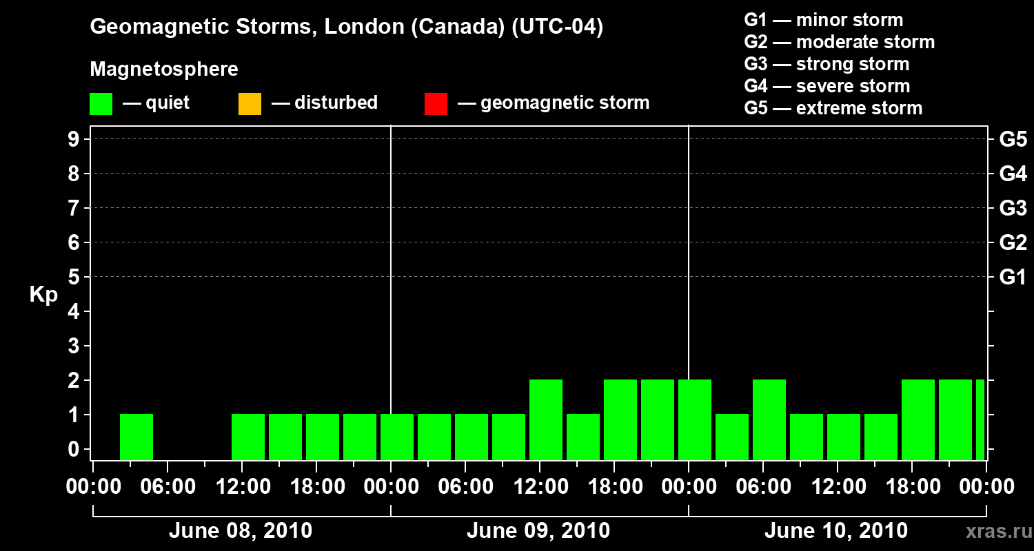 Geomagnetic storms in London (Canada) — Jun 10, 2010